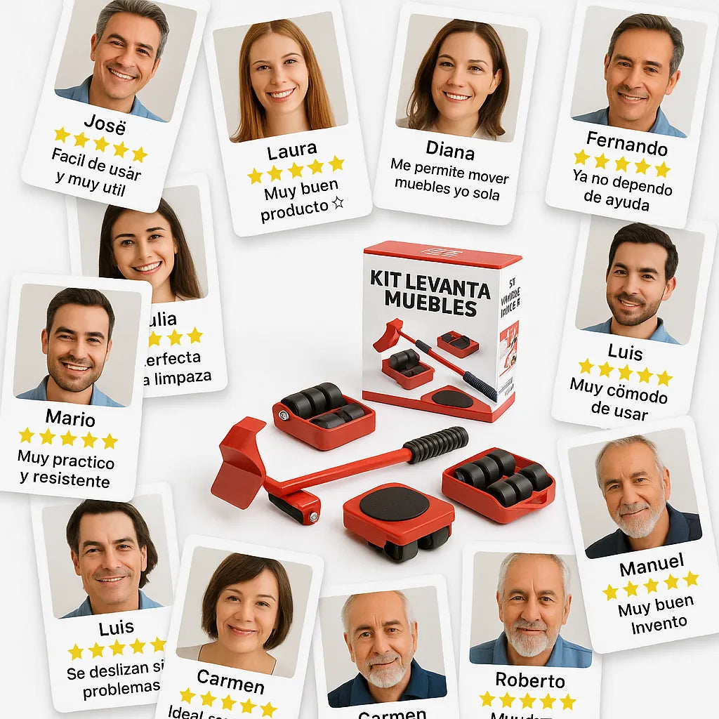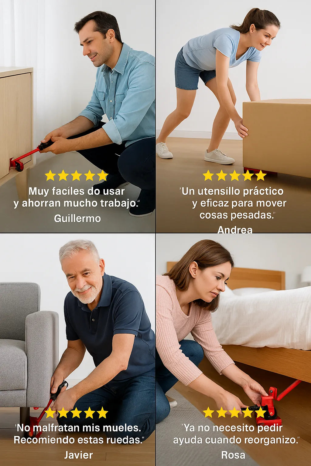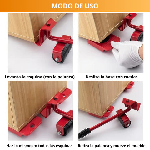 Palanca ergonómica + 4 bases con ruedas reforzadas. Úsalo solo/a y reorganiza tu hogar en minutos.
